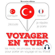 Voyager en turc : 300 mots phrases et expressions essentielles et les 100 verbes les plus courants. Le turc est une langue parlée principalement en Turquie et en Chypre du Nord. Nombre de locuteurs : 78 millions comme langue maternelle et 91 millions au total. Actuellement, savoir parler les langues étrangères est indispensable. Pour pouvoir communiquer au travail, voyager à l'autre bout de la planète ou tout simplement échanger avec l'autre, regarder les nouveaux épisodes d'une série en VO et bien d'autres raisons. Comment apprendre une langue autrement ? Aujourd'hui, l'apprentissage des langues fait sa révolution : plus besoin d'aller s'inscrire à des cours de langues. La méthode d'apprentissage que nous vous proposons est la suivante : nous avons selectionné des centaines de phrases et de mots essentiels. Vous les écoutez, vous les répétez, et vous parlez. Nous misons sur la prononciation, la répétition orale, l'écoute, conjugués à des mots, des phrases essentielles, et une liste de vocabulaire. Cela fait des décennies que la répétition espacée est prouvée comme étant une méthode d'apprentissage efficace. Nous avons choisi le vocabulaire par fréquence d'utilisation, et nous vous proposons de vous apprendre en priorité les 20% des mots qui sont utilisés 80% du temps. L'objectif final est d'obtenir un niveau suffisant dans une langue pour être capable de tenir des conversations simples, pouvoir comprendre les échanges simples, s'en sortir dans les situation de la vie quotidienne, une étape qui sera suffisamment motivante pour vous donner envie de continuer et de commencer à explorer la nouvelle culture qui s'ouvre à vous.