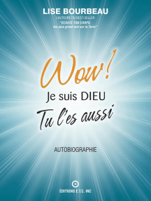 Ce livre est ma biographie. Tu te demandes peut-être pourquoi je l’ai intitulé ainsi. Lors d’une méditation, j’ai eu une vision du titre Je suis DIEU, WOW! ainsi que du dessin de la page couverture. J’ai tout noté, même si je me disais que je ne pouvais écrire un tel livre pour le moment car je croyais que l’idée serait très mal perçue. Par contre, comme je respecte mon intuition, je savais que je devrais l’écrire un jour mais seulement beaucoup plus tard dans ma vie. Quelques mois se sont écoulés puis j’ai envisagé l’écrire plus vite que prévu, surtout parce que bien des gens me mettaient sur un piédestal.