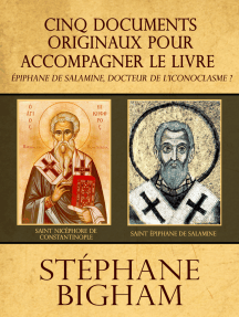 Études sur le mot image: Léon de Chalcédoine ; « Le Saint-Esprit est l’image du Fils » ; Qui est l’Ancien des jours ? Évaluation : 0 sur 5 étoiles0 évaluationÉpiphane de Salamine, docteur de l'iconoclasme ? Déconstruction d'un mythe Évaluation : 0 sur 5 étoiles0 évaluationLes images chrétiennes : Textes historiques sur les images chrétiennes de Constantin le Grand jusqu'à la période posticonoclaste (313-900) Évaluation : 0 sur 5 étoiles0 évaluationLES CHRÉTIENS ET LES IMAGES: Les attitudes envers l’art dans l'Église ancienne Évaluation : 0 sur 5 étoiles0 évaluationL'art roman et l'icône : Le dernier art occidental à caractère iconique et d'autres études Évaluation : 0 sur 5 étoiles0 évaluationDeux sarcophages du IVe siècle mal interprétés: non pas trinitaires, mais bien christologiques Évaluation : 0 sur 5 étoiles0 évaluationL'art, l'icône et la Russie: Documents russes sur l'art et l'icône du XVIe siècle au XVIIIe siècle Évaluation : 0 sur 5 étoiles0 évaluation