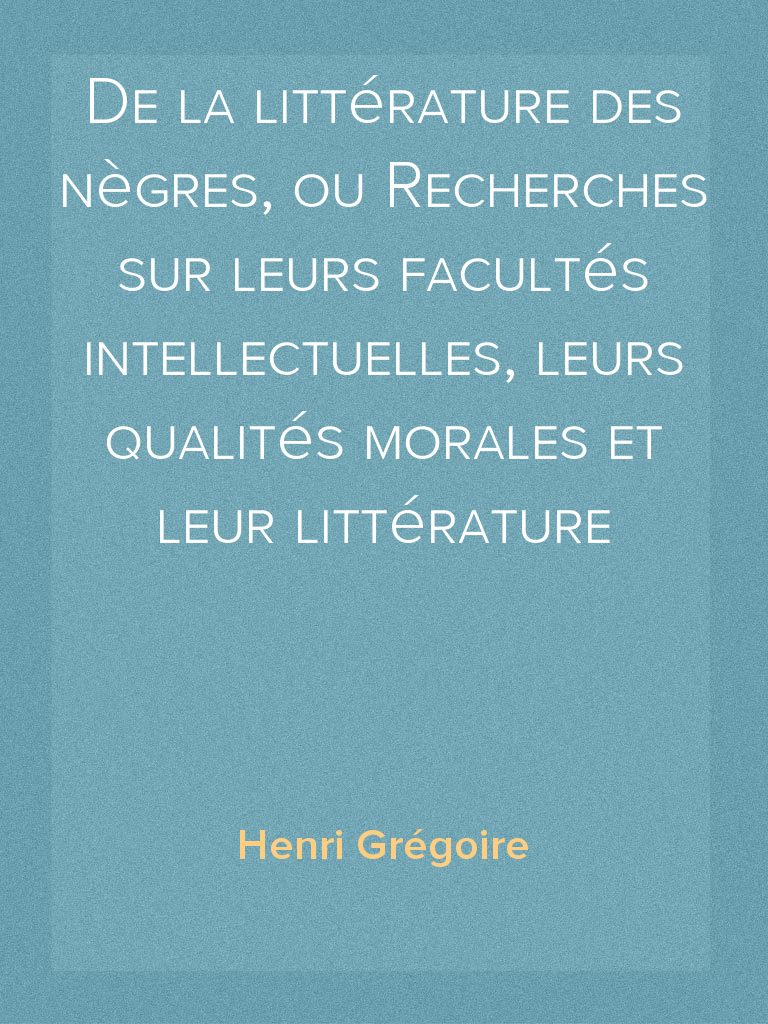 De la littérature des nègres, ou Recherches sur leurs facultés intellectuelles, leurs qualités morales et leur littérature sera disponible le