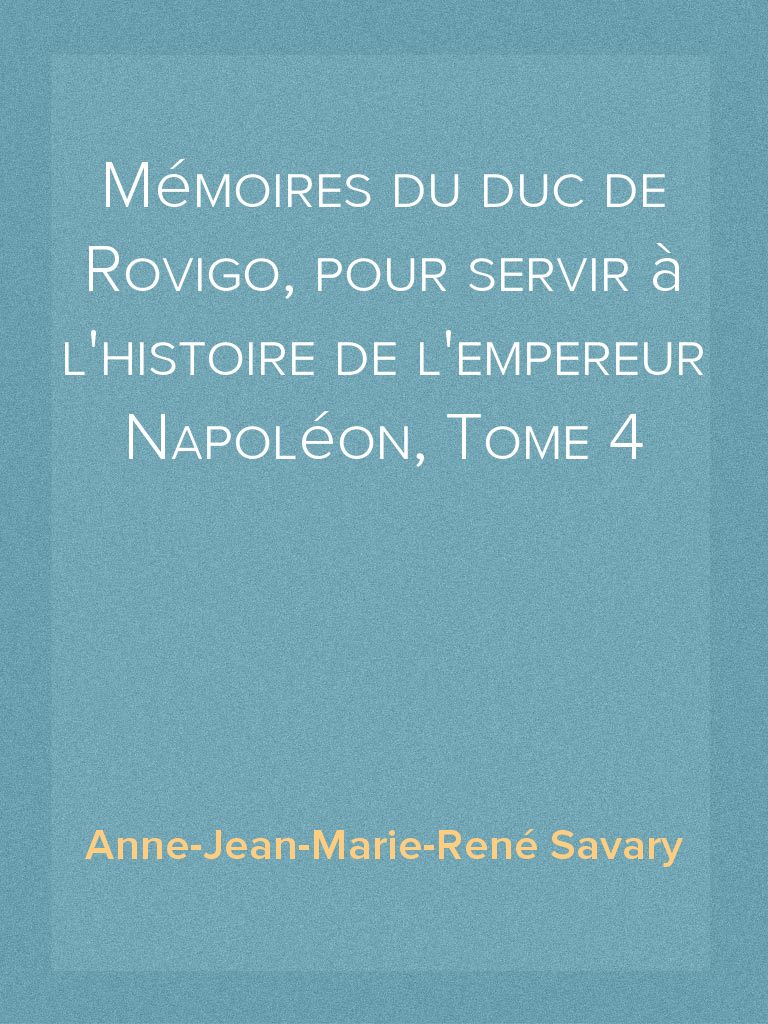 Mémoires du duc de Rovigo, pour servir à l'histoire de l'empereur Napoléon, Tome 4 sera disponible le