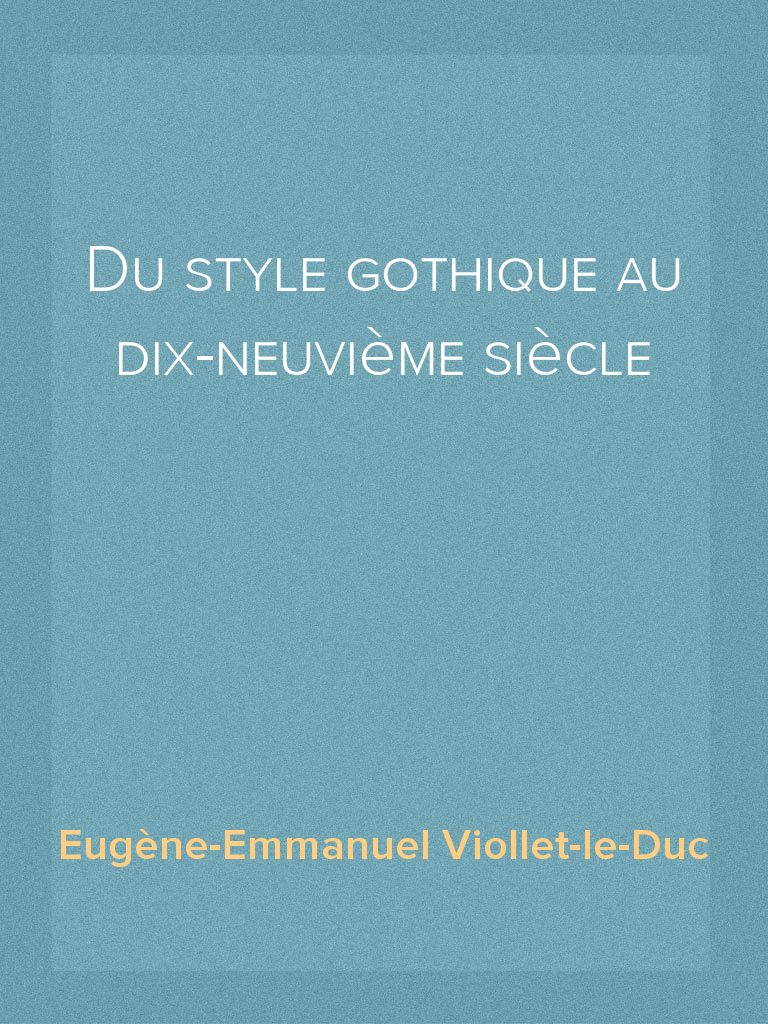 Du style gothique au dix-neuvième siècle sera disponible le