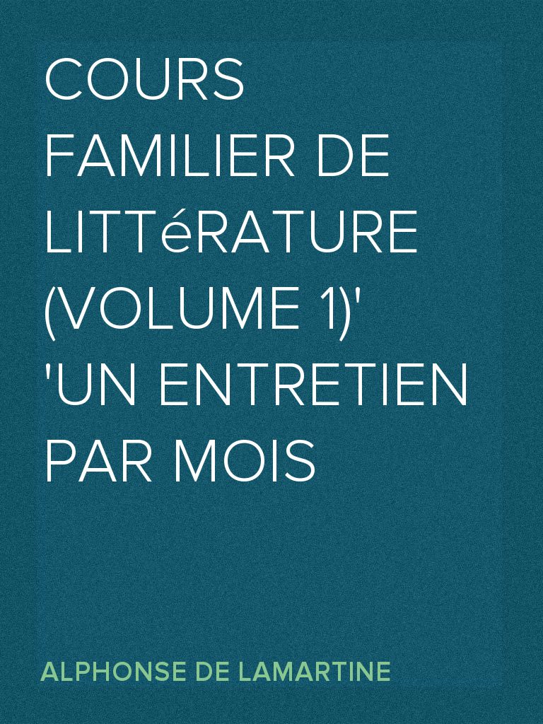 Cours Familier de Littérature (Volume 1) Un Entretien par Mois sera disponible le