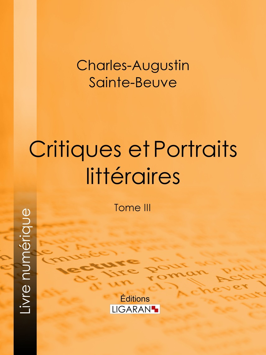 Critiques et Portraits littéraires: Tome III sera disponible le